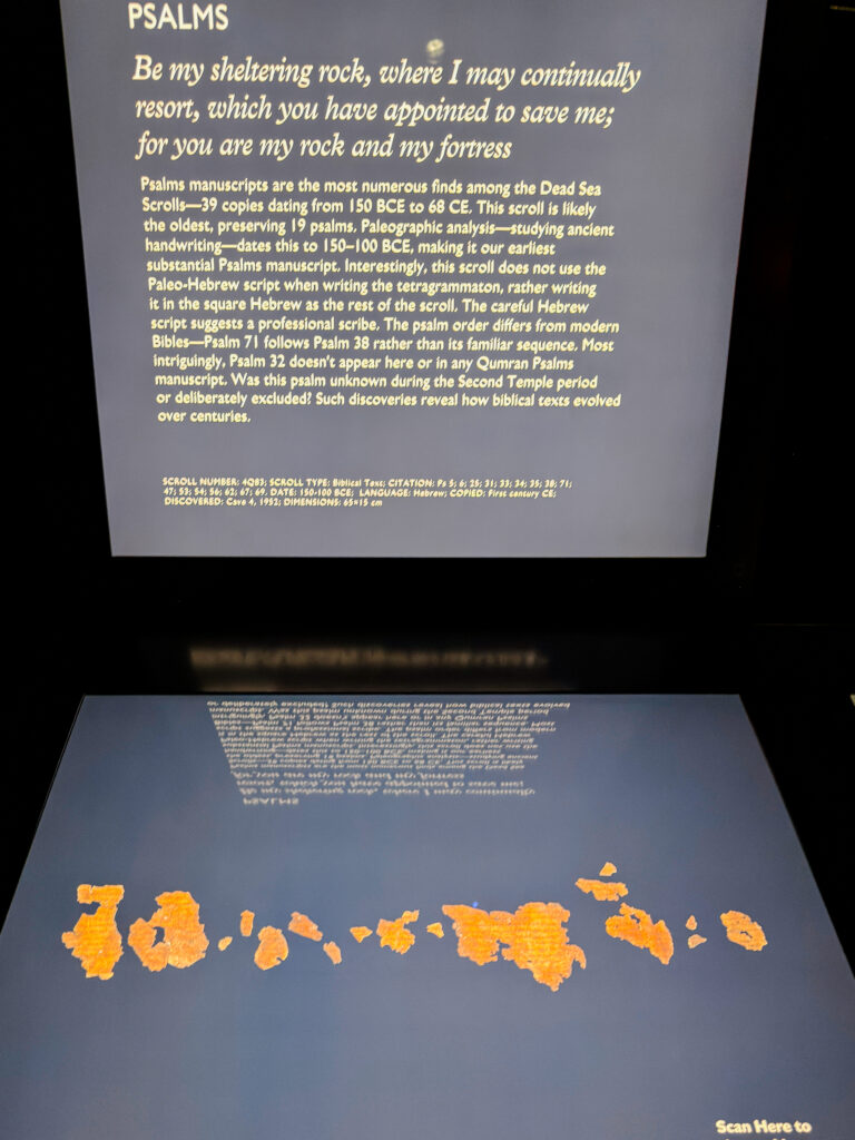 Standing there felt like standing in front of something that time itself couldn’t destroy. These scrolls are thousands of years old. At their finding, they predate the oldest known copies of Scripture by almost a thousand years, and yet the text is almost identical.